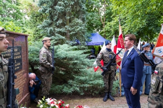 Uroczyste złożenie kwiatów pod pomnikiem Powstańców Warszawskich w Ciechanowie